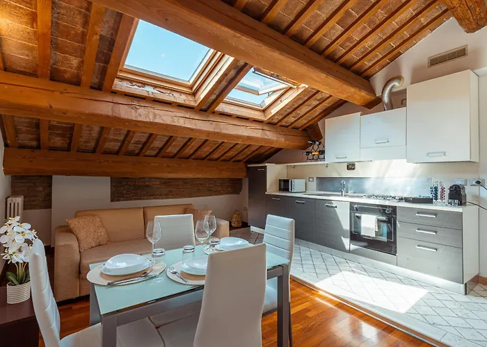 1-pokojowy Mansarda Vespucci - Car Parking położony jest w dzielnicy Ferrara Old Town i oferuje Wi-Fi na terenie oraz parking prywatny. Pałac Schifanoia znajduje się w mniej niż 1 km od apartamentu o powierzchni 50 m^2, podczas gdy Klasztor Bożego Ciała znajduje się w nie więcej niż 1 km.